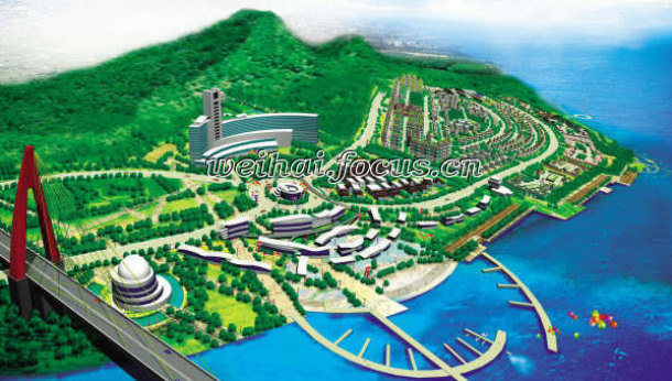 国际海洋城是威海康荷国际海洋城旅游开发公司开发的旅游重点建设项目,该项目位于威海市双岛大桥南侧,是进入威海的西大门,处在环海风景线上,创造一个国际级的度假休闲及会议中心,建立一个由山林、海洋、大自然和人类和谐共处的美好生活环境及旅游胜地,春夏秋冬四季皆宜,各具特色,项目建设符合威海市对旅游格局的整体规划和产业发展的需求。 由烟威高速公路一进入威海,你就可以看到占地面积1995亩,规划面积1470亩,建筑使用征用面积约1200亩的项目区域,它的基地西面向大海,东部及东北部为山坡地,约占基地面积的1/3,其余为海岸及平缓坡地。海岸线长约2000米,基地内部建筑背山面海成扇形,布局合理,景色怡人。 根据项目的地形特征和功能要求,将:“动”(旅游、休闲)与“静”(分时度假)、“山”(坡地森林)与“海”(海岸休憩)四大特色融合成一体,浑然天成,既保持各自独立的韵味,充分发挥各自的特色,又不相互干扰、相互辉映,尽量依地形之特点,不破坏原有的自然环境,加以人工修整后,达到画龙点睛的效果。 一、项目分区 该项目总建筑面积854071.38平方米,总投资339635.67万元.主要划分为:海鲜商城区;海景SPA养生会馆;漆弹练习场;美食广场;商店街;旅游接待中心;五星级观光酒店;游艇码头及俱乐部;海水浴场;海神庙、观光灯塔、彩虹大桥;中央森林绿化带、世界风情渔村;分时度假公寓;海岸休闲活动带;观光缆车等。 (一)海鲜商城及海景SPA养生会馆 总占地面积147.01亩,总建筑面积58743.38平方米。 规划设有海鲜商城、海景温泉、海景SPA养生会馆。 (二)森林游乐区 森林游乐区总占地面积约281.17亩 在海鲜商城及海景SPA养生会馆的上方,松树林区地势较高,为了不破坏大自然的生态,规划了童话世界、森林小木屋、咖啡屋、欢乐天地、探险天地、海盗城堡、缆车区等七大主题游乐设施,适合阖家欢乐。 (三)海岸休闲活动带 海岸休闲活动带总占地面积约163.23亩。 沿海边修建一条海岸休闲活动带,海岸休闲活动带规划海滨浴场,亲水休闲广场、游艇码头、瞭望台几咖啡厅等,提供游客从事海上各种休闲活动(如滑水、拖曳伞、水上摩托车、沙滩车、帆船),为游客提供观海、亲海、散步的场所。