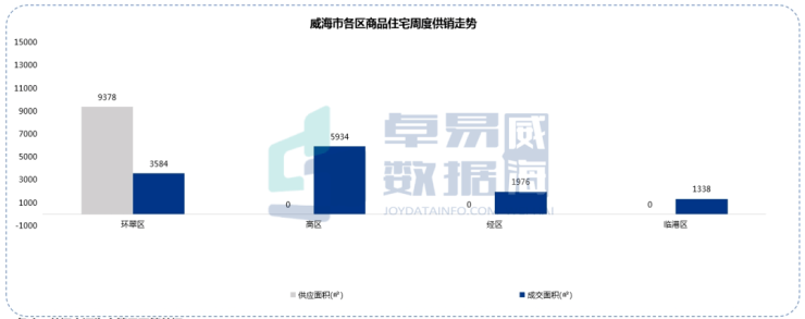 本周威海商品住宅成交共106套,高区成交套数最多,成交46套,销售面积5934㎡