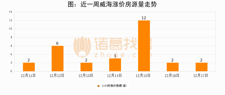 根据诸葛找房数据显示,威海24小时涨价房源量为2套,较12月16日持平。
