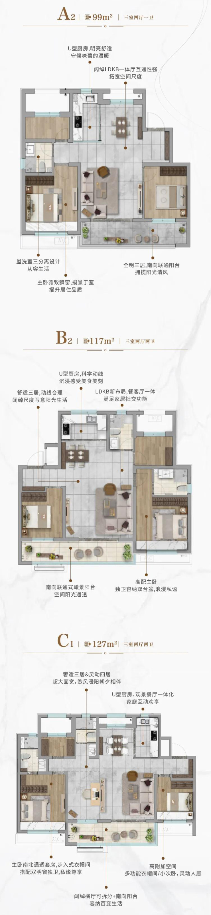 威高锦绣四海打造建面约99-127㎡升级户型,均价11500元/平,预计2024年毛坯交付。项目现有三个样板间,分别为99平米,117平米和127平米。