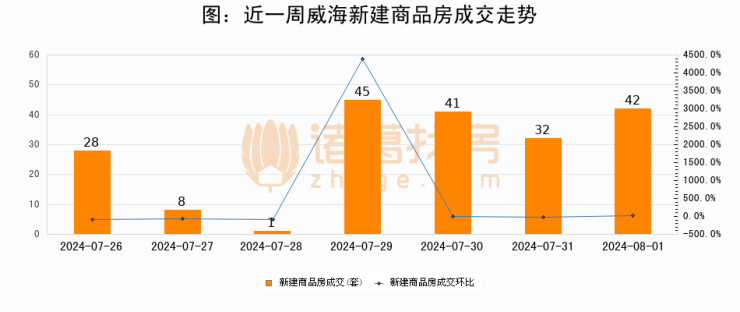 根据威海市住房和城乡建设局数据显示,2024年08月01日威海新建商品房成交42套,较昨日增加10套,环比上涨31.2%