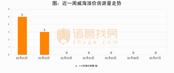根据诸葛找房数据显示,威海24小时涨价房源量为0套,较05月06日持平。