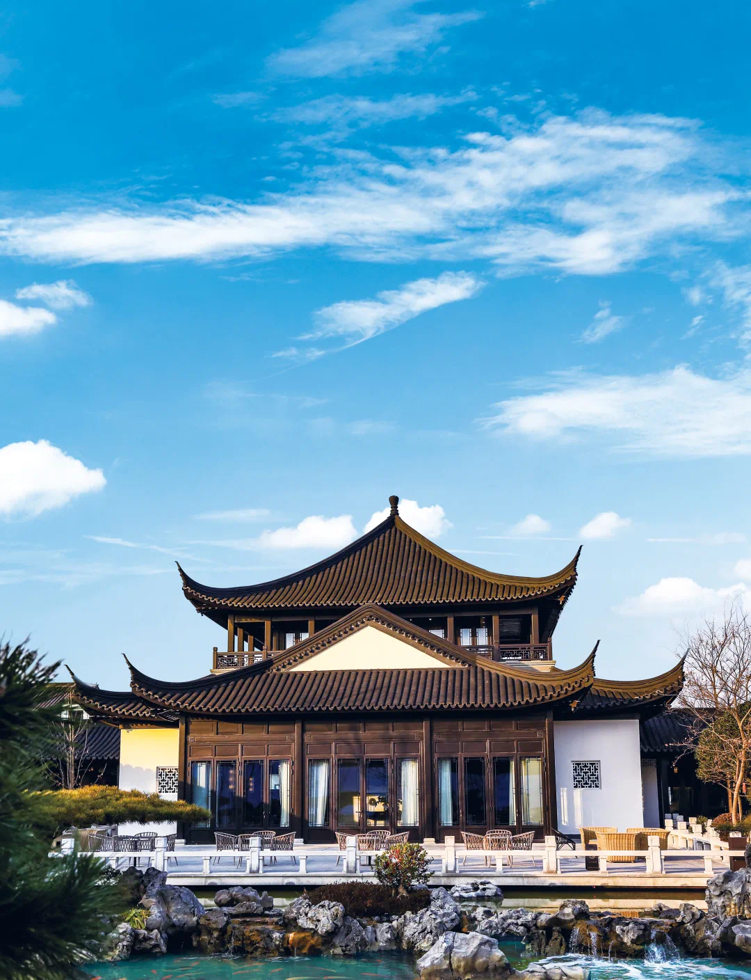 源自苏杭一派的园林美学,一席江南里中式合院,沿袭婉约清雅的东方传统而来。粉墙黛瓦,斗拱飞檐,滴水瓦当……溯源3000年前的造园艺术,在春日自然美景的交织中,找回生活的原本底色。