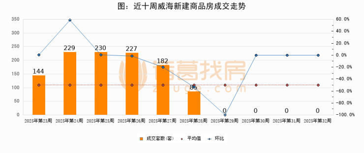进入2025年第32周(08月04日-08月10日),威海新建商品房成交0套,较上周持平
