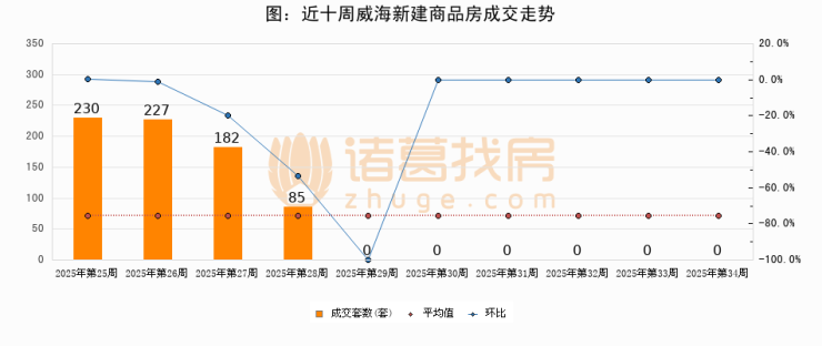 进入2025年第34周(08月18日-08月24日),威海新建商品房成交0套,较上周持平