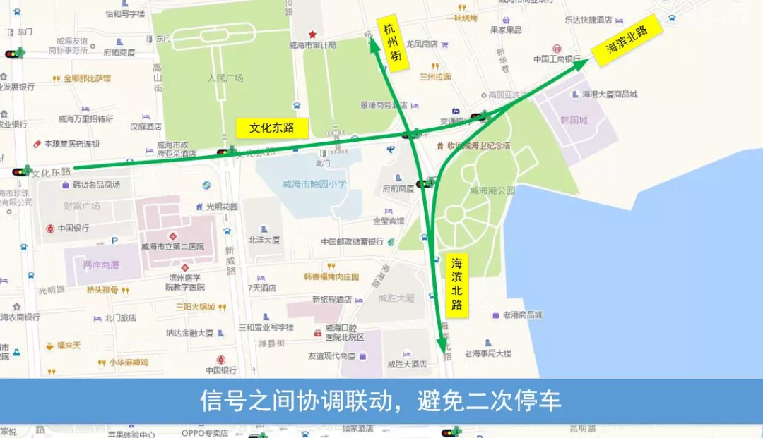 (3)将海滨路-新华巷西口停止线前移,加大路口续车空间,提升每信号周期过车数量。