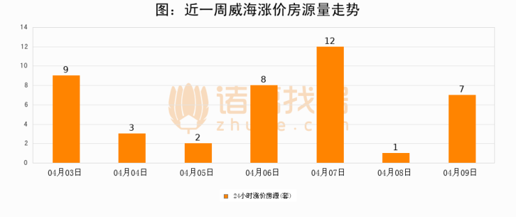 根据诸葛找房数据显示,威海24小时涨价房源量为7套,较04月08日增加6套,环比上涨600%。与此同时,涨价房源占比小幅扩大,业主信心有所提升。