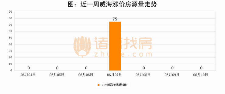 根据诸葛找房数据显示,威海24小时涨价房源量为0套,较06月09日持平。