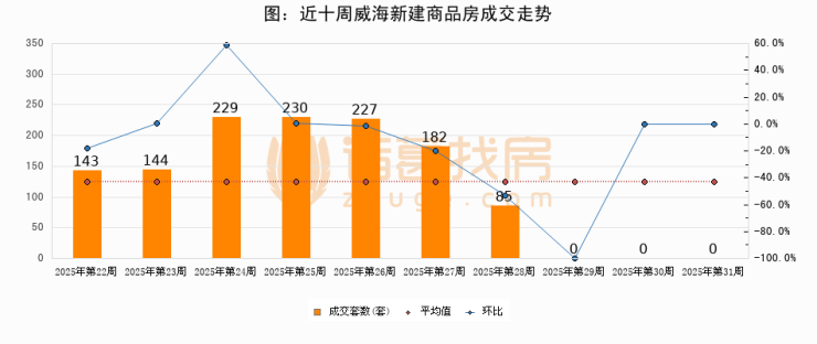 进入2025年第31周(07月28日-08月03日),威海新建商品房成交0套,较上周持平
