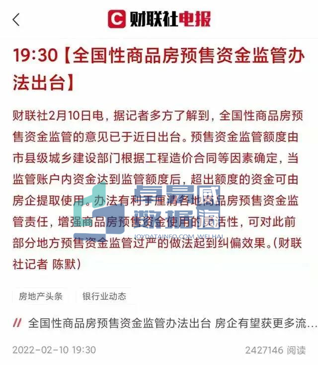 2022年2月7日至2月13日,搜狐焦点威海站研究中心联合卓易数据,从政策、新房、土拍、开盘等多方面对本周威海市房地产市场进行了整理分析,详情如下: