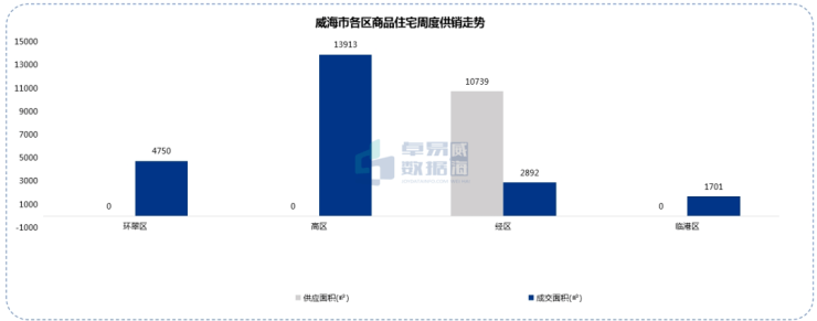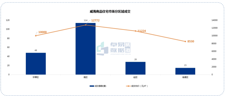 本周威海商品住宅成交共205套,高区成交套数最多,成交114套,销售面积13913㎡