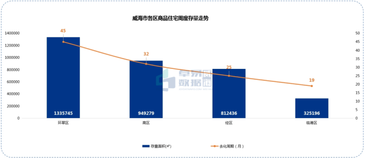 存量:截至上周末,全市商品住宅存量342.2万㎡,以近6个月的销售速度估算,去化周期约为31个月。