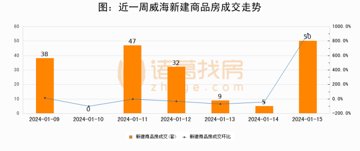【威海成交日报】01月15日新房成交50套;涨价房源3套