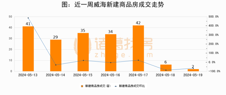 根据威海市住房和城乡建设局数据显示,2024年05月19日威海新建商品房成交2套,较昨日减少4套,环比下降66.7%