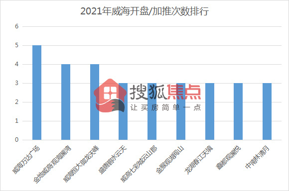 威海2021年全年开盘/加推次数项目排行