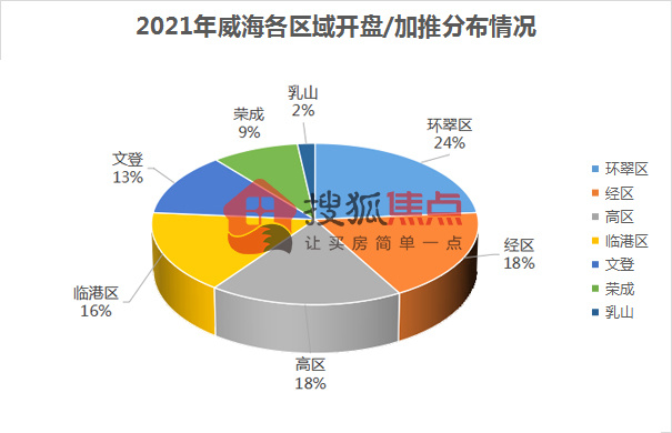 2021年威海开盘/加推各区域分布占比 环翠区依旧主力