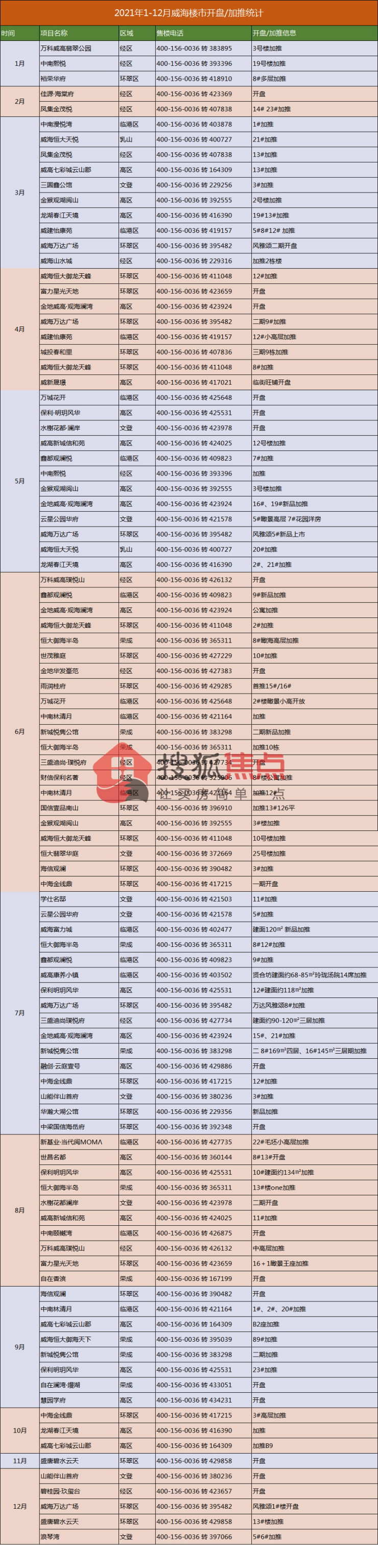 2021年威海全年开盘/加推99次 同比上涨62%