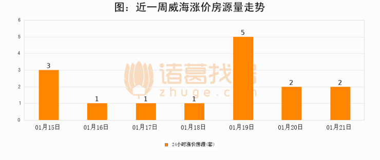 根据诸葛找房数据显示,威海24小时涨价房源量为2套,较01月20日持平。