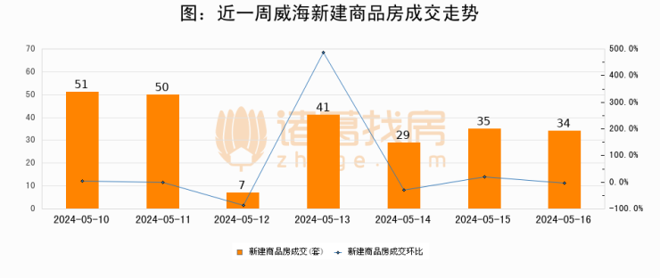 根据威海市住房和城乡建设局数据显示,2024年05月16日威海新建商品房成交34套,较昨日减少1套,环比下降2.9%