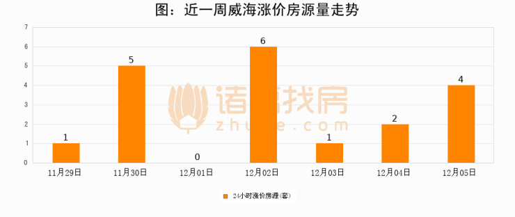 根据诸葛找房数据显示,威海24小时涨价房源量为4套,较12月04日增加2套,环比上涨100%。与此同时,涨价房源占比小幅扩大,业主信心有所提升。