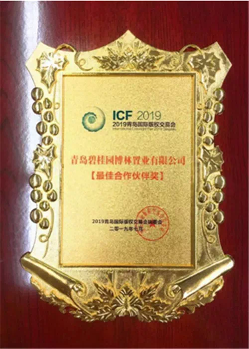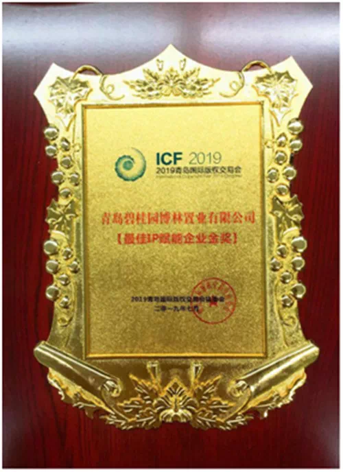 而在7月6日青岛国际版交会的颁奖现场,碧桂园鲁东区域凭借“齐鲁碧桂园”这一文化IP 与中影集团(流浪地球IP)等18家企业一同获得“较佳IP赋能企业金奖”,“齐鲁碧桂园” IP 形象也在众多国内外优秀的IP 中脱颖而出,摘得“较佳版权产品银奖”。这是行业对碧桂园在IP 方面探索的认可,也是碧桂园继续扎根齐鲁大地,传承中华文化,不断前行的动力。