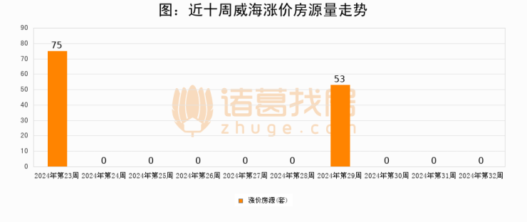 从调价房源来看,第32周威海涨价房源0套,较上周持平。与此同时,32周涨价房源占比持平