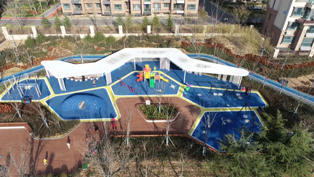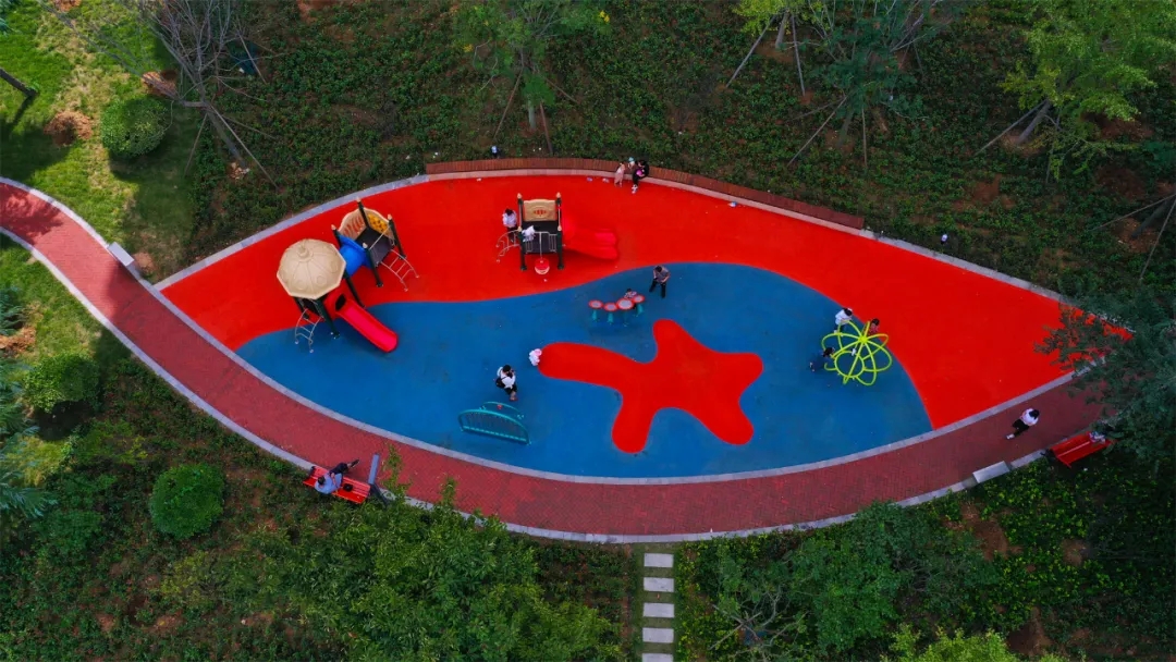 在空间上,园内设置了运动健身空间、儿童活动空间、邻里交流空间等区域,配置了健身器材、儿童游乐、座椅廊亭、景观亮化等便民服务设施,打造了一个集园林景观与公共服务于一体的绿色空间。