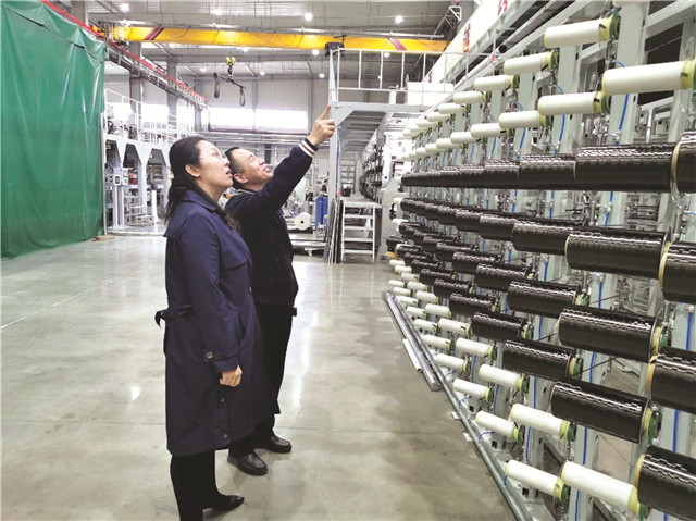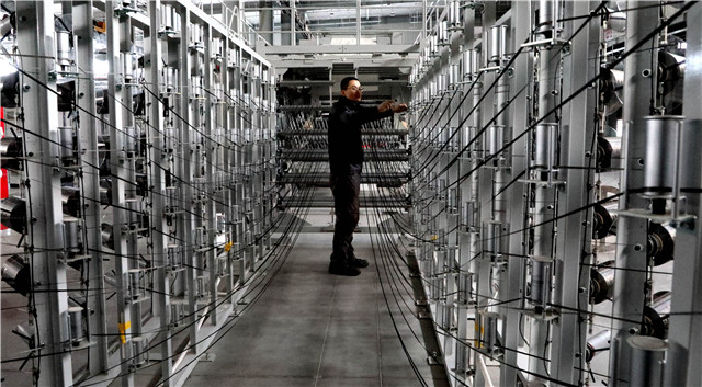 在宝威新材料科技有限公司打造的行业排名前列“5G+工业互联网”智能工厂(黑灯工厂)里,一排织布机以统一的节奏快速转动,形形色色的机械手不知疲倦地“摆头”,无人驾驶机器人灵活绕过障碍,把物料精准“卡”在传送带上……如此织一卷碳纤维及复合预浸材料,只需要5分钟,这是世界上较快的制造速度。