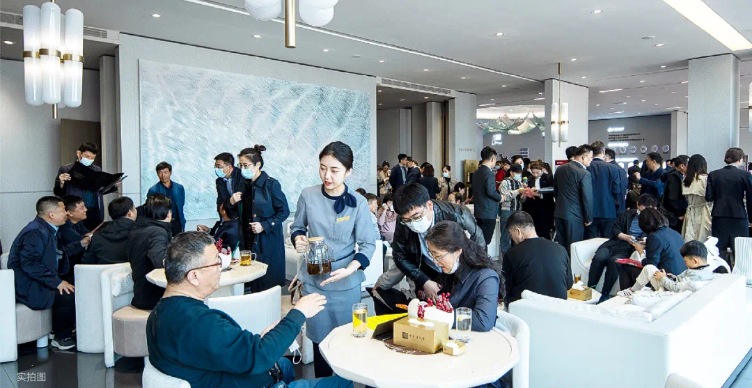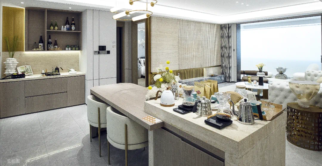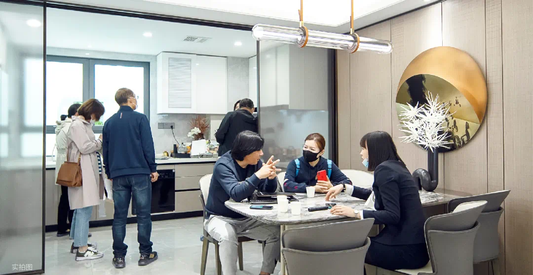 看到客户围坐在125㎡户型的岛台餐桌上,置业顾问端上刚刚出炉的香烤泡芙,就着冰爽的气泡水,恬然品尝的惬意;