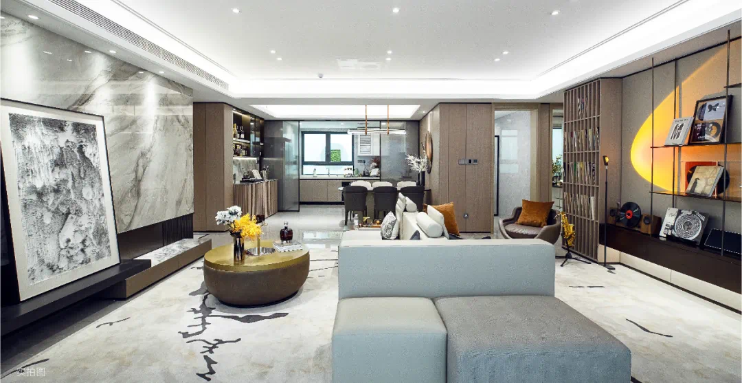 看到三两好友围坐在143㎡户型的唱片区,有人在换唱片,有人端来刚刚泡好的咖啡;
