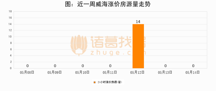 根据诸葛找房数据显示,威海24小时涨价房源量为0套,较05月13日持平。