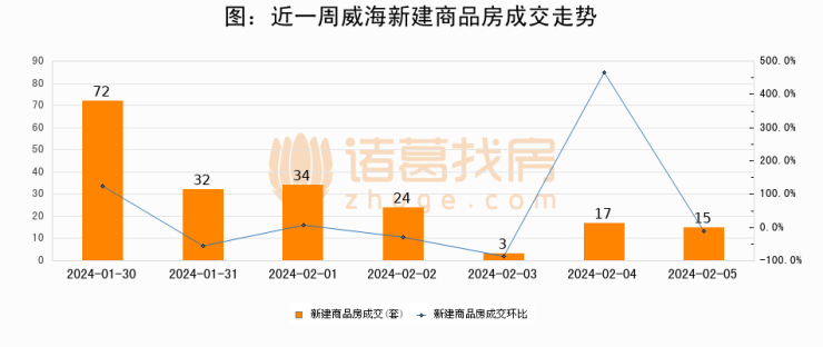 根据威海市住房和城乡建设局数据显示,2024年02月05日威海新建商品房成交15套,较昨日减少2套,环比下降11.8%