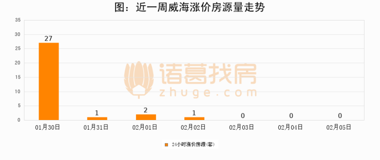 根据诸葛找房数据显示,威海24小时涨价房源量为0套,较02月04日持平。