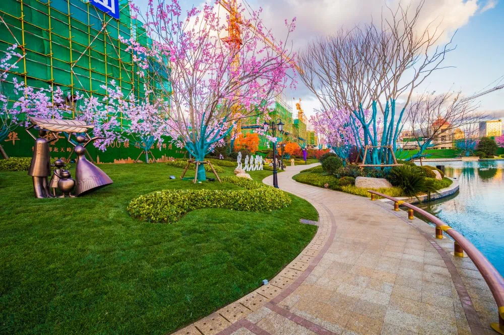 威海恒大御龙天峰,五重欧式风情园林与中心内湖相映成趣,臻选多种乔木花卉全冠移植,将建筑融入自然。