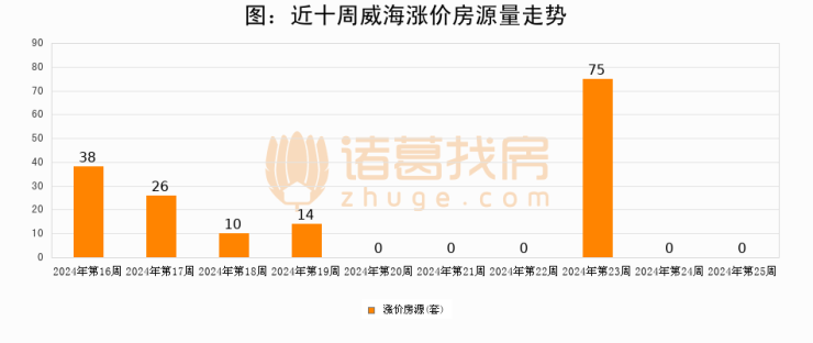 从调价房源来看,第25周威海涨价房源0套,较上周持平。与此同时,25周涨价房源占比持平