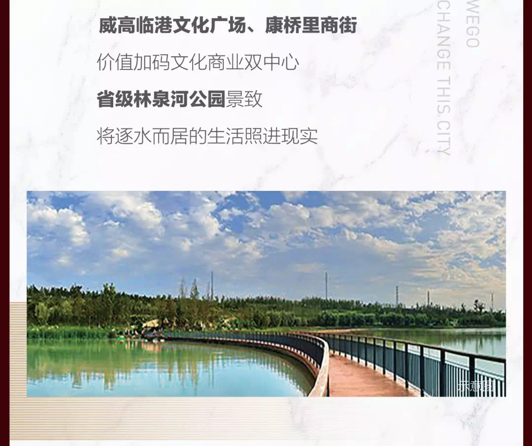 1、本项目推广案名:威高·水韵康桥,实际地块用名:锦和花园。商品房楼号、房号由政府有关部门初步确定,项目最终名称及商品房楼号、房号以政府相关文件确认为准;2、本资料相关内容及图片是对项目所做的示意表现,仅供参考,最终以政府有关部门批准的文件和图则为准。经政府批准的详细规划已在销售现场公示,敬请查看。后续因规划及设计方案调整导致信息变化的内容,我司将按照政府要求公示;3、户型所标注建筑面积仅供参考,相同户型单位因楼栋、楼层、单元等差别,局部布局、面积等可能不同,其中所列因素可能会对部分房源造成采光、通风、视线等方面的影响。4、本广告对项目的园林规划、配套示意、交通通达、公共设施、各种产品等文字介绍,旨在提供相关信息,不意味着本公司对此作出了任何承诺,详情以现场交付为准;5、本项目的教育配套以政府规划为准,可能会存在教育资源差额分配的情况,业主是否符合入读条件,具体以政府文件为准。教育机构的开业招生时间可能受政府或政府指定的经营方要求所限,此情况下以政府或政府指定的经营方要求为准;文中所述“城轨1号线”为政府规划相关,目前正处于规划阶段,即将开工建设。6、本广告相关面积段均为预估建筑面积,具体面积以签署《商品房买卖合同》为准;7、本广告仅作为要约邀请,买卖双方的权利及义务以双方签订的《商品房买卖合同》为准。8、本广告2020年9月9日启用,相关内容如有更新,请以较新资料内容为准。9、本广告部分配图及字体来源于网络,相关版权归原作者所有,如有侵权,请联系我们删除,谢谢!10、法律允许范围内开发商拥有解释权。(威)房预售证第20190154号