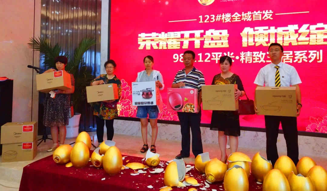 营销中心内再次举办了文艺演出、砸金蛋抽奖等活动,并为新成交业主们送上了精美礼品。
