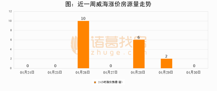 根据诸葛找房数据显示,威海24小时涨价房源量为0套,较04月29日减少2套,环比下降100%。与此同时,涨价房源占比小幅回落,对于购房者来说是一个入市窗口期,购房者可抓住时机入市。