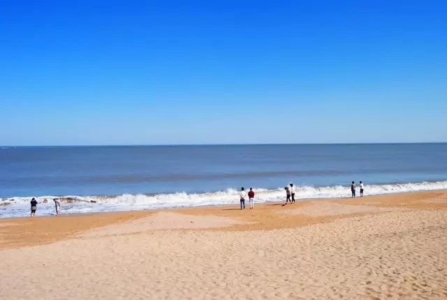 走在一望无际的沙滩,眺望二十多公里的海岸线连绵不断。银滩以沙而得名,当太阳光芒四射时,远远望去,银光闪闪,一大片一大片的,灿烂夺目,汇聚成一条长几十里的银河,被誉为“天下排名前列滩”。坡缓滩平,俯下身子抓一把沙子,粒粒晶莹剔透,无需用力,就从指缝中流淌下来。年轻人也经不住诱惑,挽起裤脚,光着脚丫,忘情地追逐着;老年人则相携而行,沙质细腻松软,脚下软软的、滑滑的、痒痒的,仿佛踏着微波飘移。湛蓝的海水每天交替演奏着银滩的交响乐,时而高亢,时而低沉,时而激昂,时而舒缓,不一而同却荡涤心扉。
