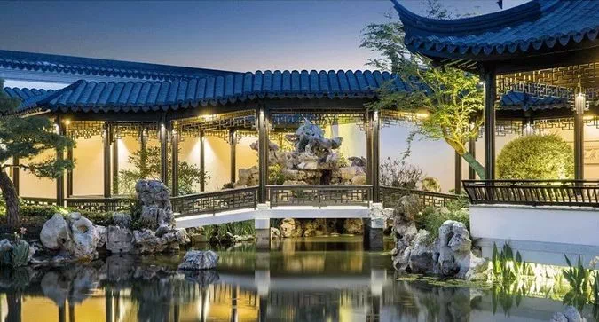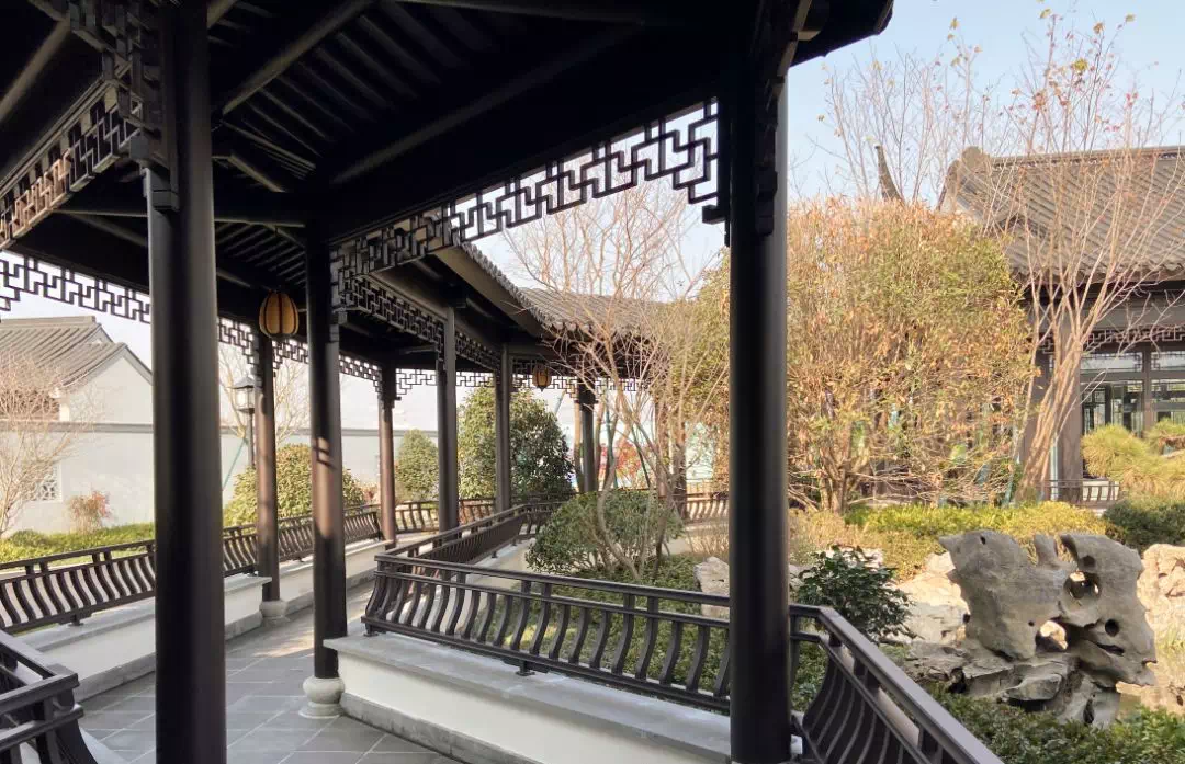 “江南烟雨地,连廊晚来风”。众所周知,江南一带多烟雨,而古代匠师造园时,巧妙结合江南这一独特的地理气候特点,常佐以飞檐、连廊作为室外园林的避雨之处,同时巧妙地连通内外之景,赏烟雨迷蒙,听风雪飘零;览秋月春风,吟花香诗语。廊的两旁,一砖一石之间,一树一草之时,一转一折之际,处处凝结着遗世独立的江南气质,蕴藏着诗意朦胧的江南情怀。