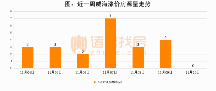 根据诸葛找房数据显示,威海24小时涨价房源量为0套,较11月09日减少4套,环比下降100%。与此同时,涨价房源占比小幅回落,对于购房者来说是一个入市窗口期,购房者可抓住时机入市。