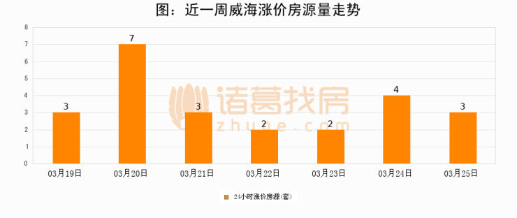 根据诸葛找房数据显示,威海24小时涨价房源量为3套,较03月24日减少1套,环比下降25%。与此同时,涨价房源占比小幅回落,对于购房者来说是一个入市窗口期,购房者可抓住时机入市。