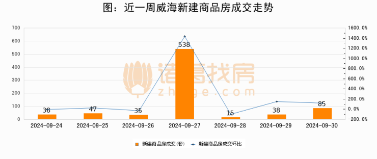 根据威海市住房和城乡建设局数据显示,2024年09月30日威海新建商品房成交85套,较昨日增加47套,环比上涨123.7%