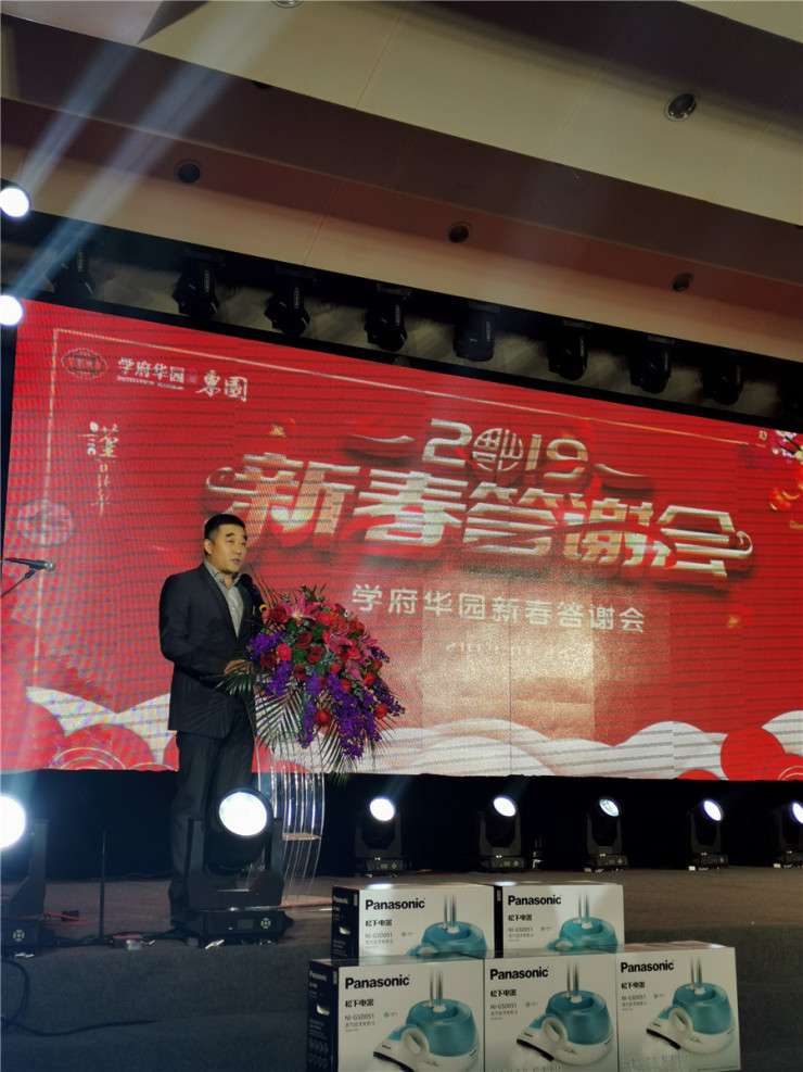 律回春晖渐,万象始更新。学府华园新春答谢会浓情谢幕,当晚,威海云华房地产开发有限公司总经理王军平先生致欢迎词,他表示,2019年云华房地产将砥砺前行,会一如既往地坚守国企匠心,源源不断地开发优质房源,以最真挚的热情服务大家。
