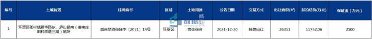 据卓易监测数据显示,本周威海市区仅出让1宗土地,土地面积26311㎡,为商住综合用地,位于环翠区张村镇昌华路东、庐山路南(姜南庄旧村改造三期)地块。