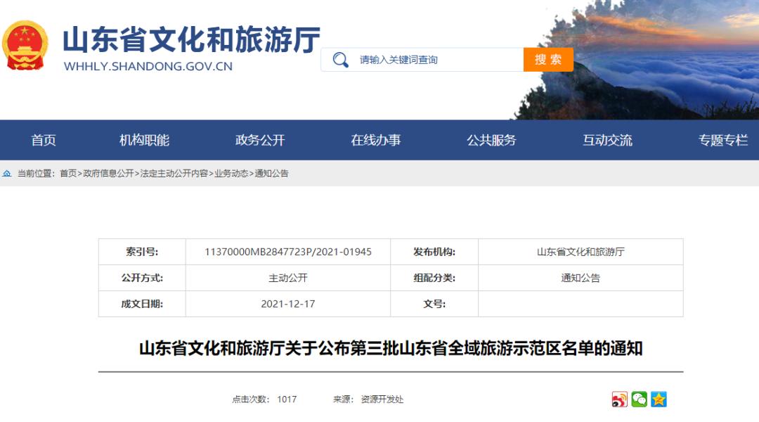 12月17日,省文旅厅正式公布第三批山东省全域旅游示范区名单。其中,威海市文登区上榜。此前,荣成市、环翠区先后入选首批、第二批省级全域旅游示范区。