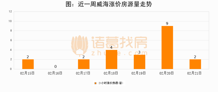 根据诸葛找房数据显示,威海24小时涨价房源量为2套,较02月20日减少7套,环比下降77.8%。与此同时,涨价房源占比小幅回落,对于购房者来说是一个入市窗口期,购房者可抓住时机入市。