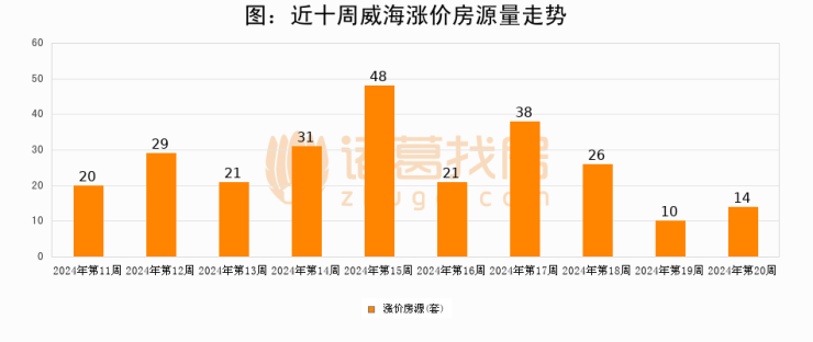 从调价房源来看,第19周威海涨价房源14套,较上周上涨40%。与此同时,19周涨价房源占比回落3.74个百分点,业主信心小幅波动,购房者可则需入市。