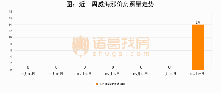 根据诸葛找房数据显示,威海24小时涨价房源量为14套,较05月11日增加14套,环比上涨0%。与此同时,涨价房源占比小幅扩大,业主信心有所提升。