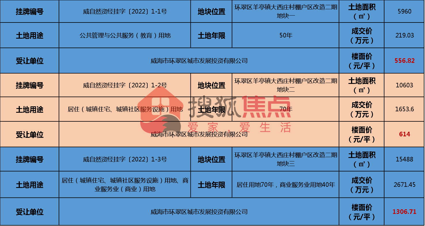3.2万㎡!威海环翠区3宗地块成交 涉及一个棚户区改造项目